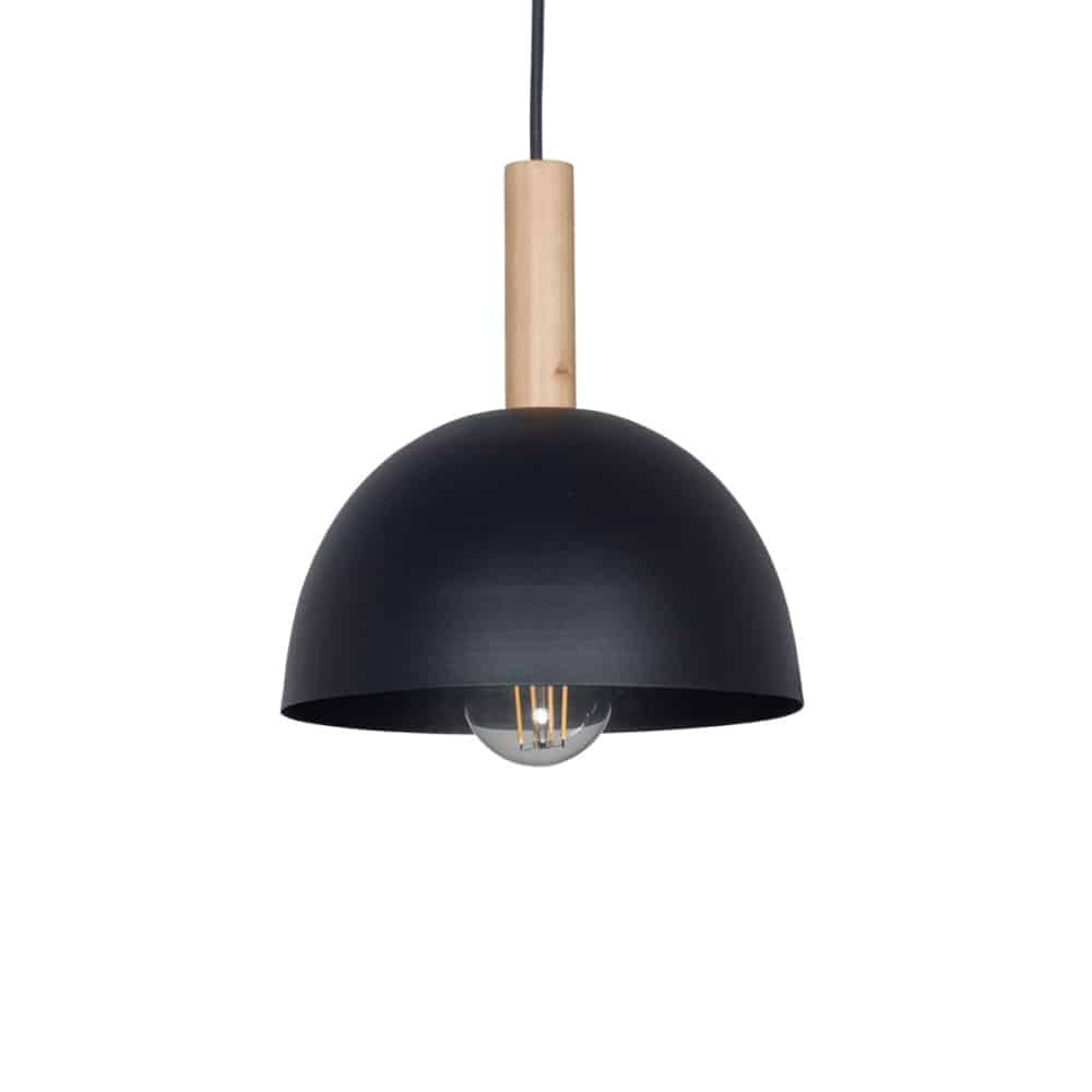 COLGANTE CHAPA 1/2 ESFERA Ø200 NEGRO C/MADERA