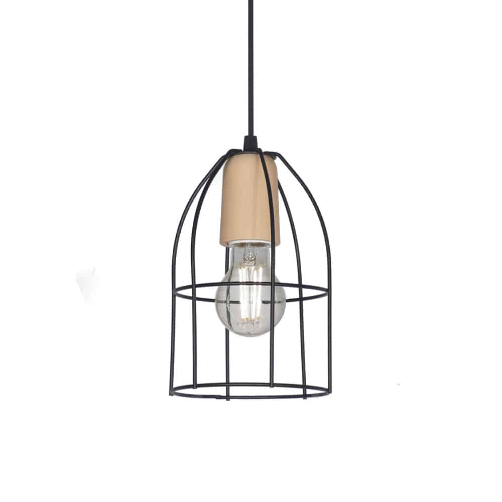 COLGANTE JAULA AVIAR MINI 1 LUZ C/MADERA NEGRO