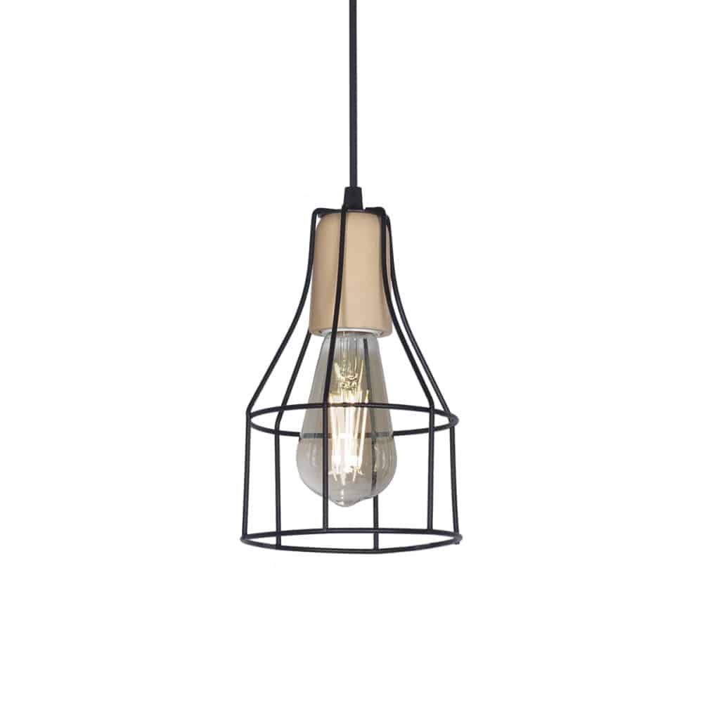 COLGANTE JAULA BOTELLA MINI 1 LUZ C/MADERA NEGRO
