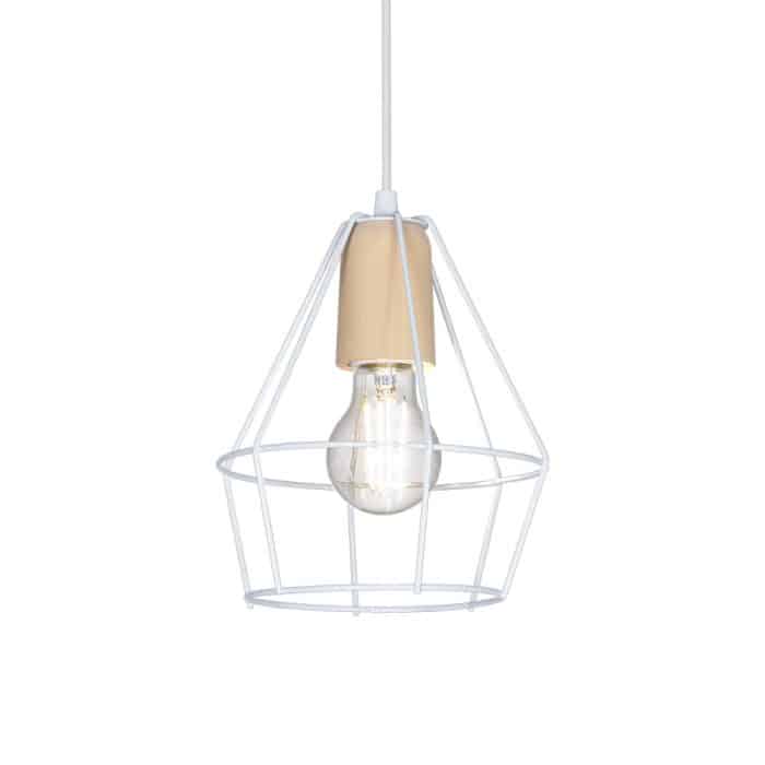 COLGANTE JAULA DIAMANTE MINI 1 LUZ C/MADERA BLANCO