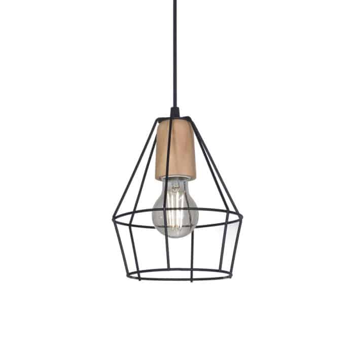 COLGANTE JAULA DIAMANTE MINI 1 LUZ C/MADERA NEGRO